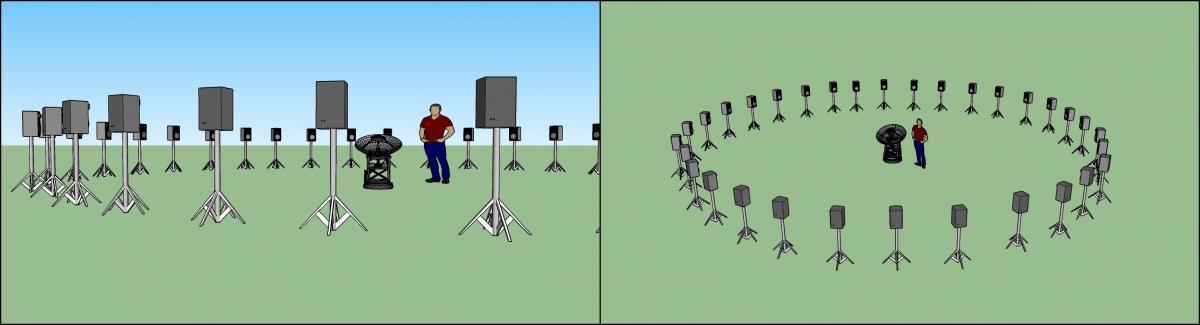 A rendering of one potential speaker arrangement for the system.
